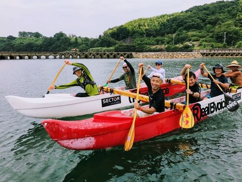 ダブルハルで漕ぐことによって、 クルー全体の統一感が出て来ます。 統一感が必要なのは、 漕ぐ形でなくて、 漕ぐ為のリズムや力の入れ具合と言ったらいいでしょうか。 その部分が掴みやすいので、 結果的に統一感が出てくると感じています。 モクプニアウト…