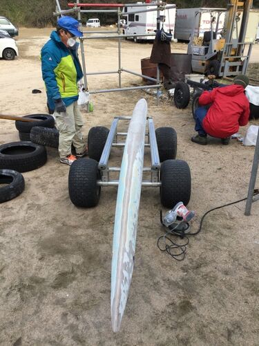Lanikaiのメンテンスも、 少しづつ進んでいます。 Iakoはほぼ終了したので、 Amaのメンテナンス。 水漏れがあったので、 塗装を剥がして、 修理箇所の割り出し。 大きな損傷はなさそう。 合わせ目のところが、 少し薄くなっていたので、 樹脂を塗布。 さてさ…